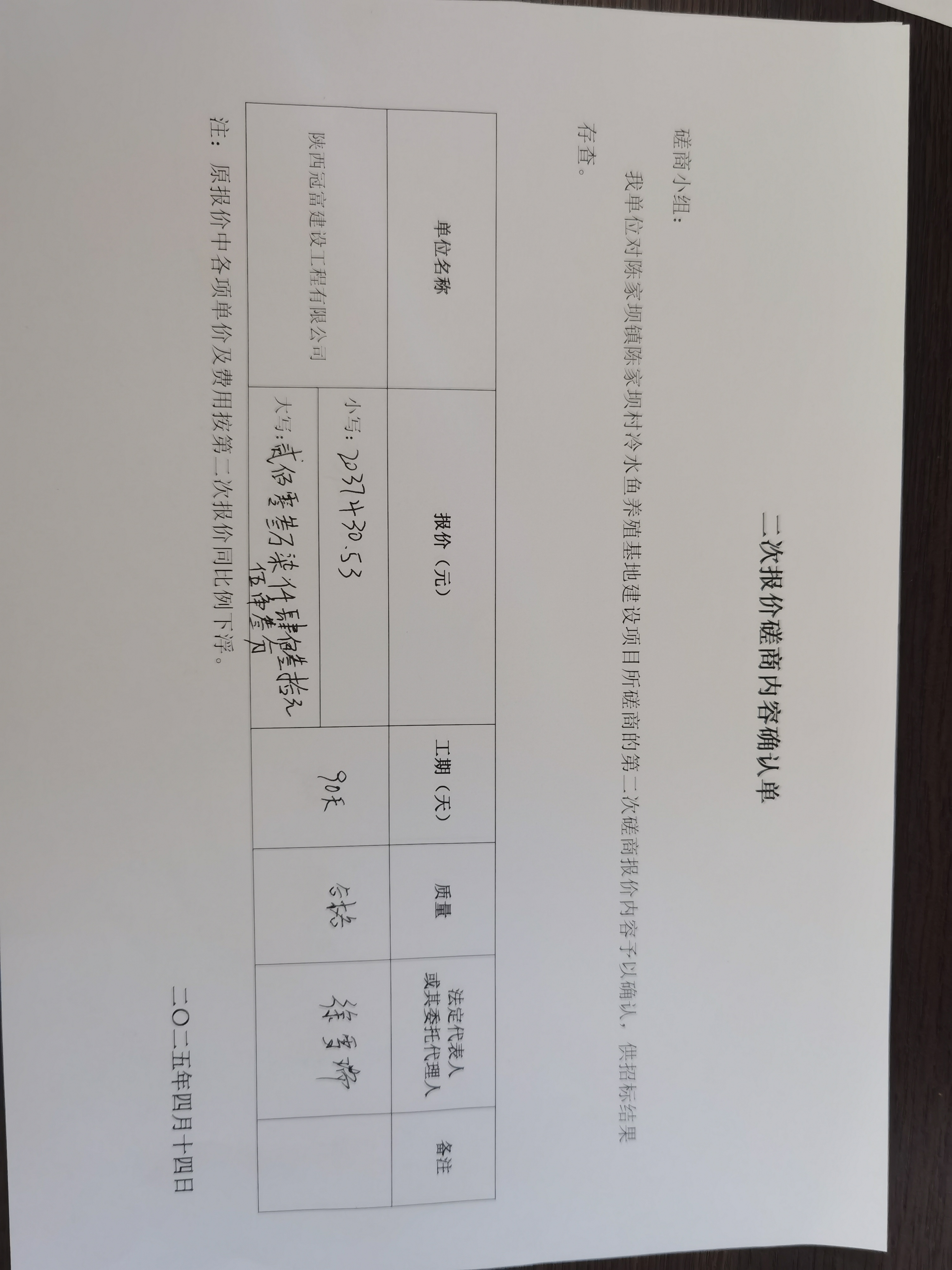 ******人民政府陈家坝镇陈家坝村冷水鱼养殖基地建设项目中标(成交)明细.pdf 磋商文件-工程.pdf 中小企业声明函.jpg 二次报价.jpg